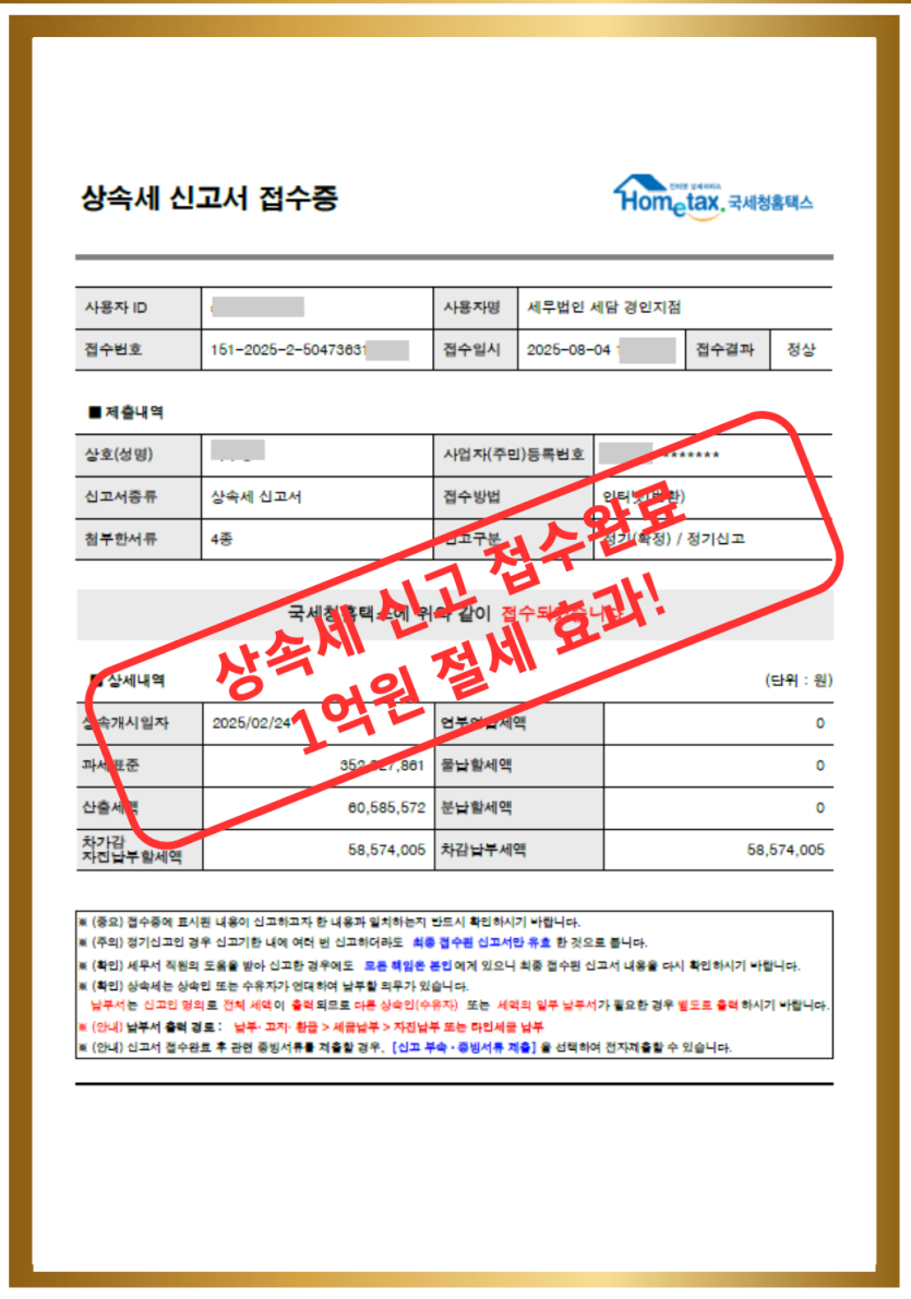 상속재산 28억원 신고 사례